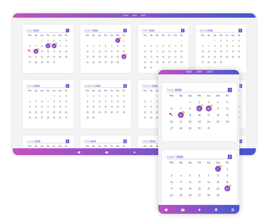 Bir veya birden fazla salona özel takvim tutabilirsiniz.